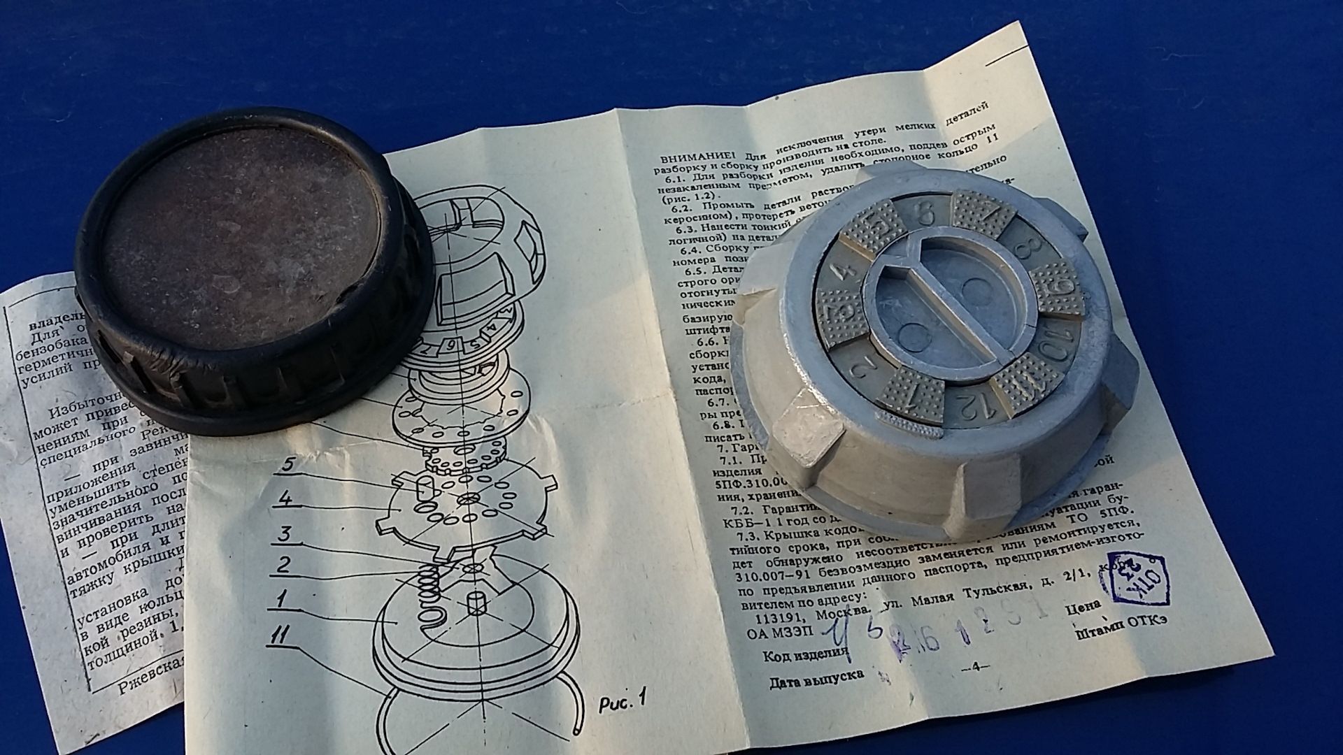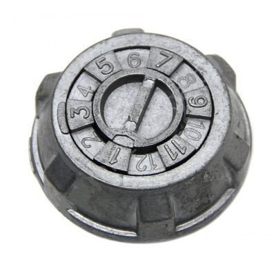 Крышка бензобака с кодовым замком 2108 для автомобилей Лада: Самара, Приора, Гранта, Калина. Не подходит на новые Гранты с 2021 года выпуска. Пробка бензобака с кодом изготовлена из алюминиевого сплава. Кодовый замок из комбинации 2 цифр. В закрытом положении крышка бензобака свободно проворачивается и не выкручивается из горловины бензобака. Для открытия крышки бензобака необходимо выставить двухзначный цифровой код. Код крышки индивидуален, установлен в процессе изготовления и указан внутри крышки.